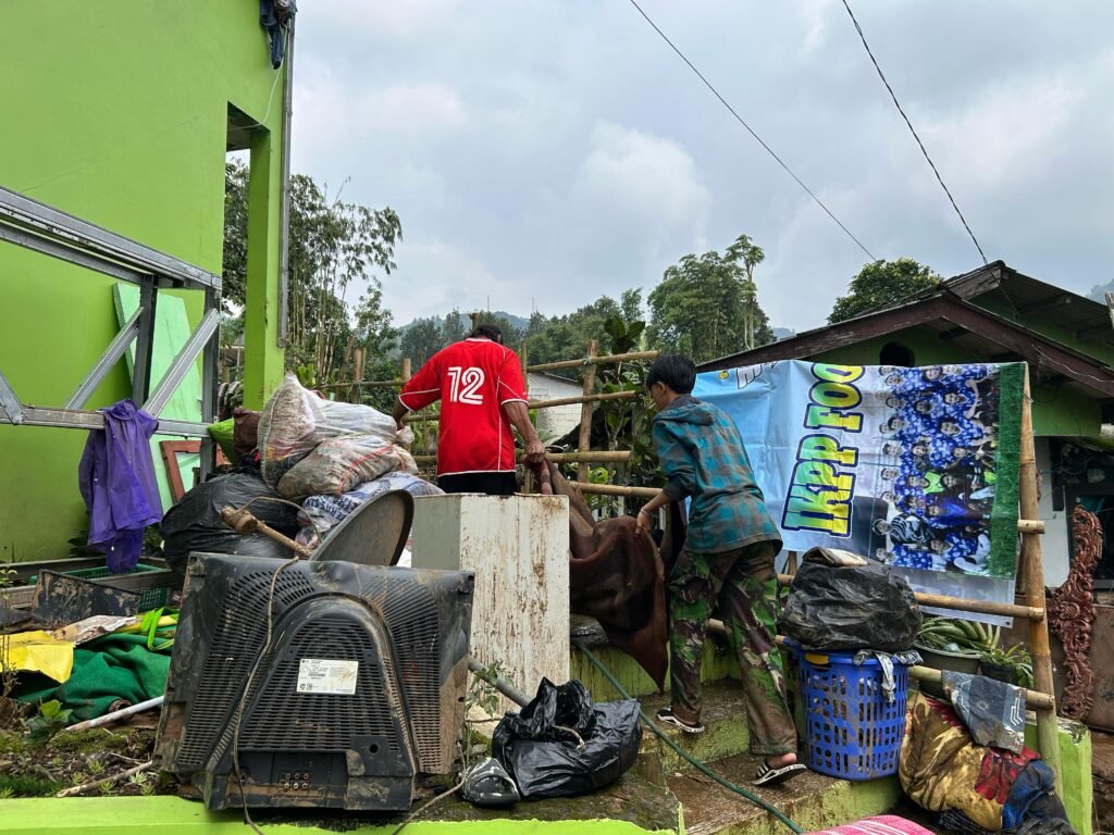 Eka menceritakan kondisi terkini di lokasi banjir, terutama di Desa Tugu, Kecamatan Cisarua, bahwa warga serta dibantu para relawan mulai membersihkan rumah-rumah dari sisa lumpur.