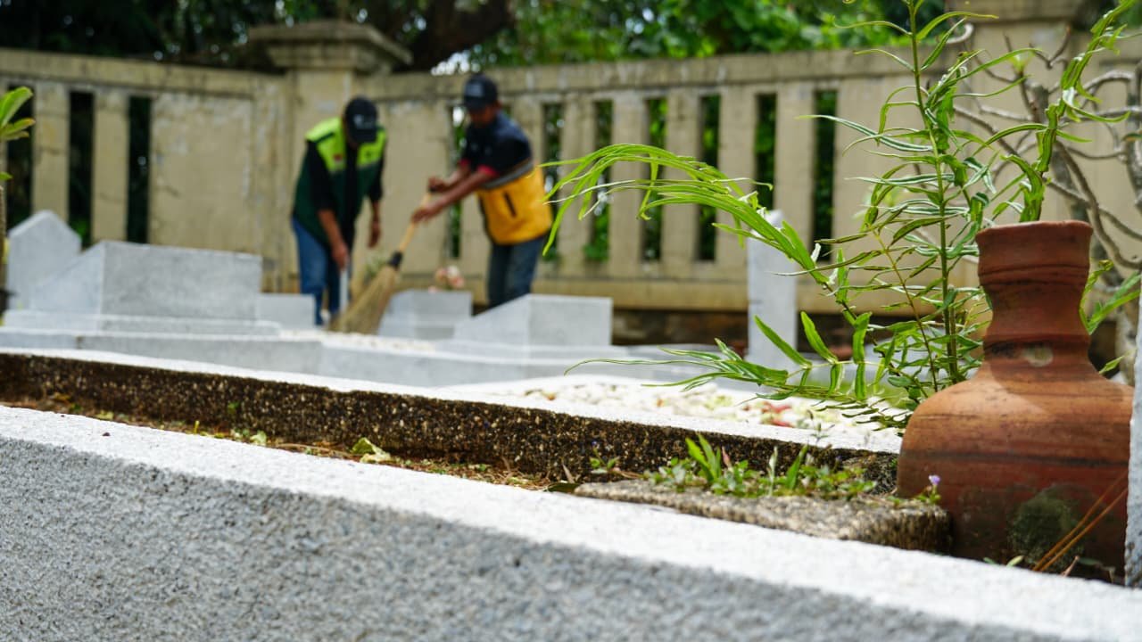 Depok—Di Hari Pahlawan Nasional 2025, Senin (10/11/2025) kelompok pasien disabilitas mental melakukan aksi bersih-bersih makam pahlawan di Taman Makam Pahlawan (TMP) Kalimuya, Cilodong, Kota Depok.