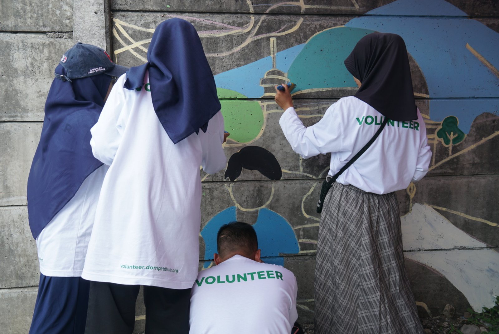 Tidak hanya Khairul, hal serupa pun dirasakan Anjani dan Meisya. Saat mengikuti aksi menggambar mural, dua volunteer asal Tangerang ini menyadari pentingnya peran anak muda dalam aksi kerelawanan.