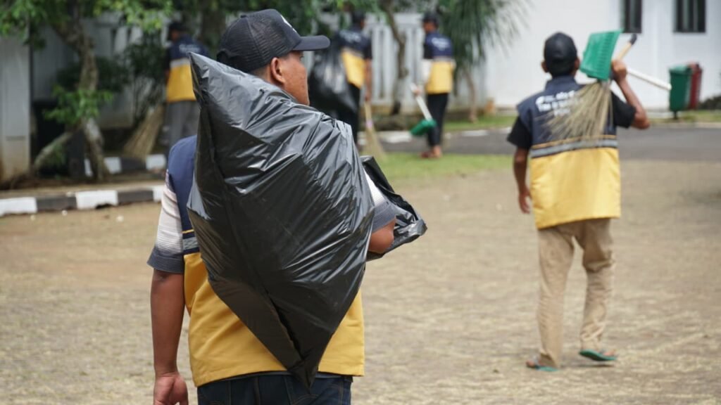 Tim B’beres, beber Kamal, beranggotakan para penyintas disabilitas mental (ODGJ) yang tengah berjuang dalam tahap pemulihan, melakukan aksi bersih-bersih TMP.