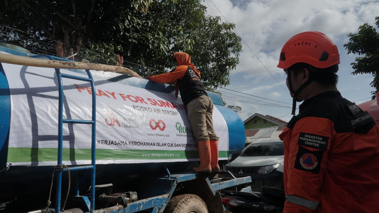 Merespons krisis air bersih tersebut, Disaster Management Center (DMC) Dompet Dhuafa menyalurkan bantuan sebanyak 22.000 liter air bersih ke Desa Tanjung Karang, Desa Simpang Empat Upah, dan Desa Upah. Penyaluran dilakukan melalui kerjasama dengan Kerohanian Islam OJK dan Keluarga Muslim Citibank.