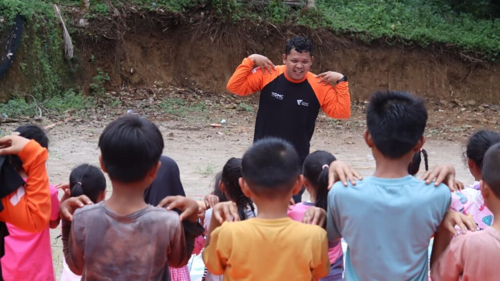 Kemudian Hendri turut menjadi relawan Psychological First Aid (PFA) dengan menghibur anak-anak penyintas. Perlahan senyum anak-anak kembali mencuat dan membawa kebahagiaan tersendiri bagi kawan-kawan relawan.